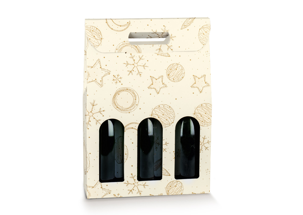Scat. 3 bottiglie f. Products list Scat. 3 bottiglie f. Spot Blu Galaxy Skin Oro White Universe White Universe Red Universe Fibra Bianco Fibra oro Fibra Rosso Fibra Verde Fibra Blu Magic Forest Avana Skin Coffee Skin Vinaccia Sacco Seta argento Juta blu Seta verde Seta rosso Terra Seta bordeaux Seta nero Seta marrone Seta oro Matelasse' nudo Matelasse' Eucalipto Matelasse' cuoio Matelasse' grigio Onda 1.0 avana Onda verde Onda nero Pelle bianco Pelle marrone Pelle grigio Pelle rosso Pelle bordeaux Pelle nero Pelle oro Linea tortora Linea verde Spot Verde Skin Argento Words Tela neutro Seta corten Sfere bianco Constellation Sfere oro Wood Vendemmia Lino Rosso Cristal Kraft Nero Kraft Bordeaux Description Box to contain 3 Bordeaux and Burgundy-type bottles made of coupled cardboard. The die-cut cardboard of the windows is used to separate the bottles. Sizes Length Width Height Pcs/Package Code 270 mm 90 mm 385 mm 30 139260C 270 mm 90 mm 385 mm 1500 139260P 270 mm 90 mm 385 mm 30 139260S Ask for more information